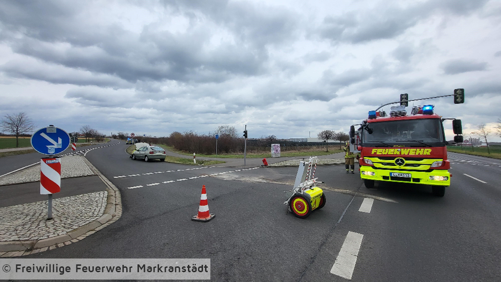 Die eintreffenden Einsatzkräfte fanden am Einsatzort zwei verunfallte Pkw vor. Die Kameradinnen und Kameraden sicherten die Einsatzstelle, schalteten die betroffenen Fahrzeuge stromlos, banden herauslaufende Betriebsstoffe und nahmen diese auf.