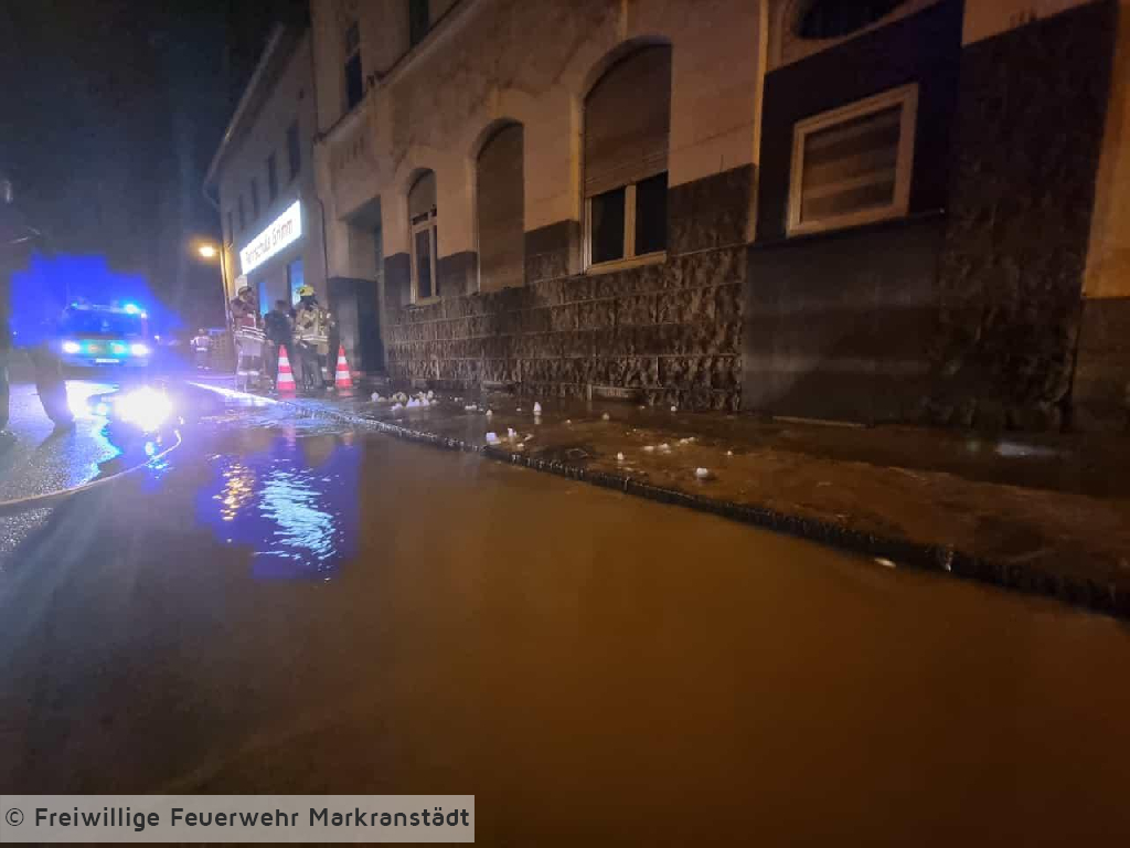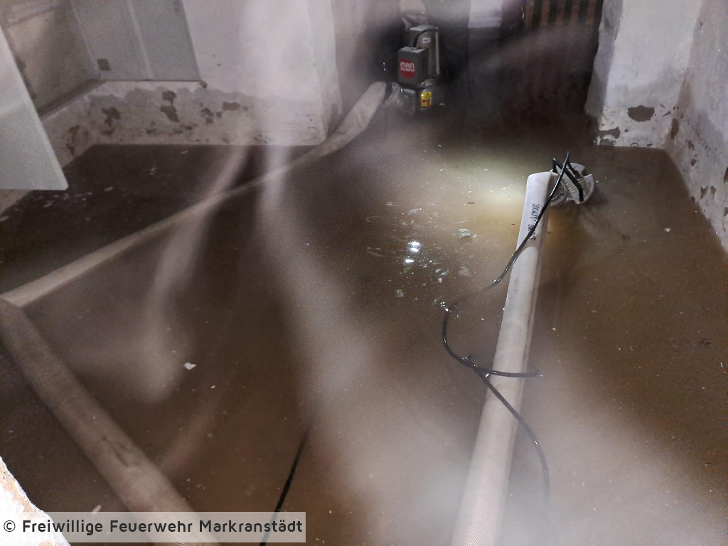 Die eintreffenden Einsatzkräfte fanden eine geplatzte Wasserleitung im öffentlichen Bereich vor. Aufgrund der Nähe zu einem angrenzenden Gebäude lief in selbigem der Keller voll. Die Kameradinnen und Kameraden sicherten den Bereich und setzten zwei Tauchpumpen zur Entwässerung des Kellers ein. Nach Abschluss der Arbeit konnte die Einsatzstelle an den Netzbetreiber übergeben werden.