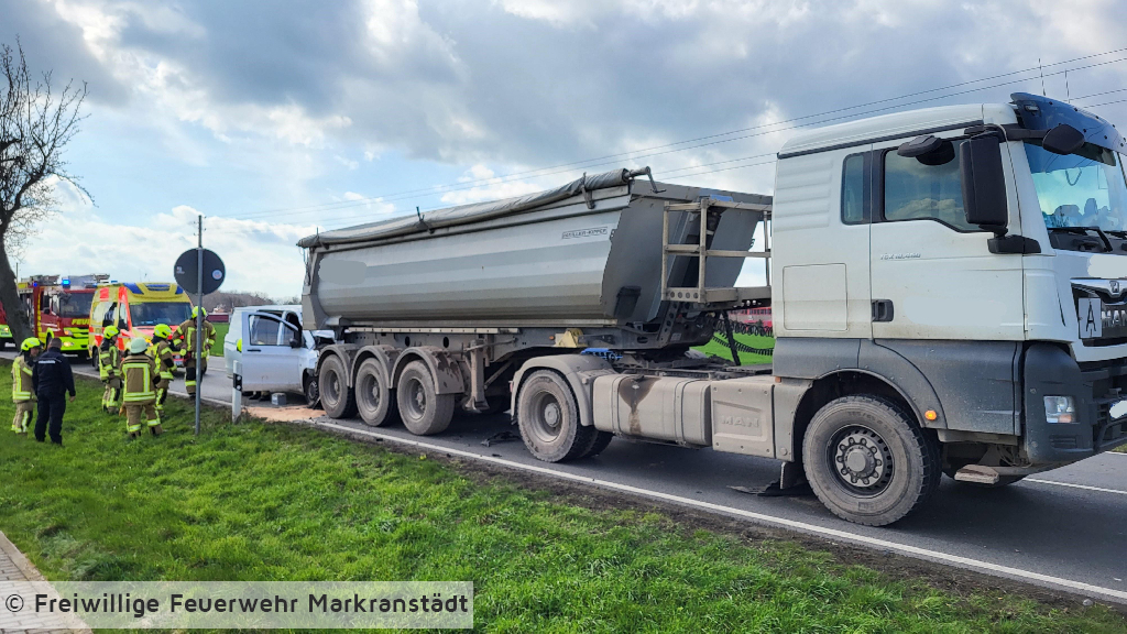 Zu einem Verkehrsunfall mit eingeklemmter Person wurden die Feuerwehren der Stadt Markranstädt in die Schkeuditzer Straße alarmiert. Beim Eintreffen an der Einsatzstelle war die Person bereits aus ihrem Fahrzeug befreit und vom Rettungsdienst versorgt. Die Kameradinnen und Kameraden sicherten die Einsatzstelle, schalteten das Fahrzeug stromlos und fingen auslaufende Betriebsmittel auf. Im Anschluss wurde die Einsatzstelle an die Polizei übergeben.