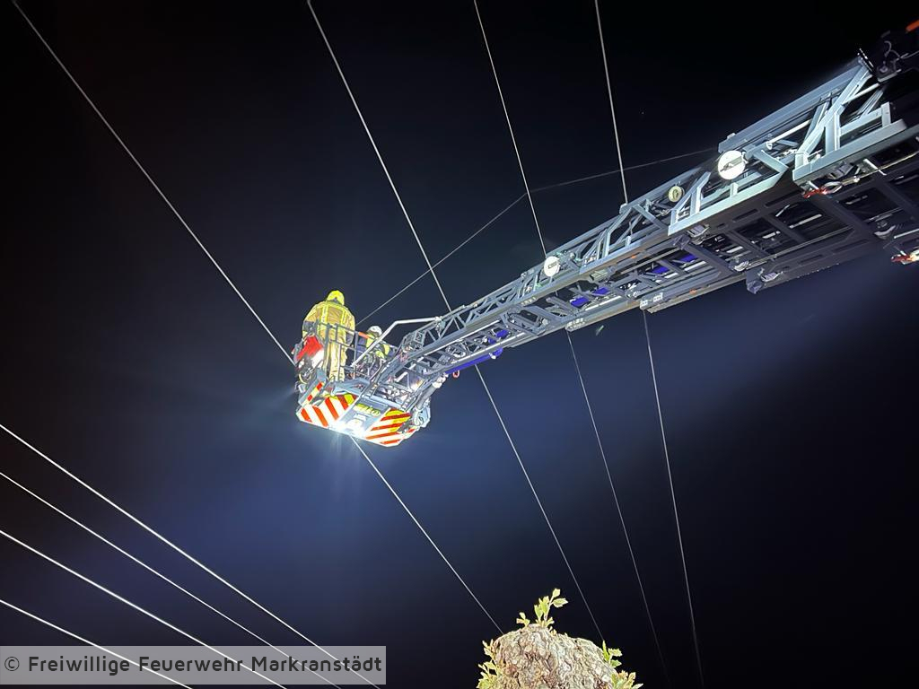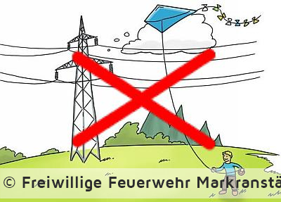 Durch unsachgemäßen Umgang geriet ein Drachen in eine Oberleitung. Leider wurde der Vorfall nicht sofort gemeldet, sondern erst zu späterer Stunde bemerkt, als sich ein Anwohner über das ungewöhnliche Objekt an seiner Satschüssel wunderte. Die herbeigerufene Polizei sicherte den Bereich und informierte den Netzbetreiber. Da ein einfaches Entfernen des Drachens aus der Oberleitung nicht möglich war, forderte dieser eine Drehleiter an. Nachdem die Oberleitung stromlos und gesichert war, konnte der Drachen entfernt werden.