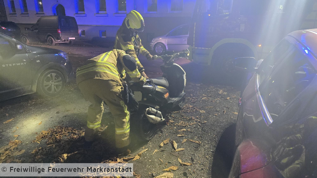 Am Freitagabend, den 31. Oktober 2025, wurde die Feuerwehr gegen 17:34 Uhr zu einem Einsatz im Stadtgebiet alarmiert. Gemeldet war auslaufendes Öl bzw. Diesel aus einem Pkw bzw. Motorrad auf der Fahrbahn. Nach dem Eintreffen der Einsatzkräfte bestätigte sich die Lage. Aus einem Moped waren Betriebsstoffe auf die Straße ausgelaufen. Um eine Gefährdung für die Umwelt zu verhindern, wurde die verunreinigte Fläche mit Bindemittel abgestreut und aufgenommen. Anschließend wurde die Einsatzstelle an die Polizei übergeben.