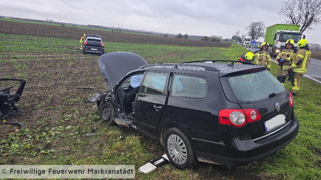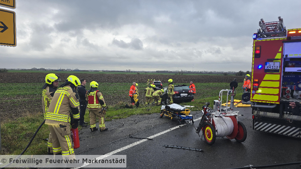 Am Donnerstagvormittag wurde die Feuerwehr zu einem Verkehrsunfall zwischen zwei Pkw alarmiert. Beim Eintreffen der ersten Kräfte bestätigte sich die Meldung, eine Person war in einem Fahrzeug eingeklemmt. In enger Absprache mit dem Rettungsdienst begann die Feuerwehr unmittelbar mit der technischen Rettung. Durch den koordinierten Einsatz der Kräfte konnte die eingeklemmte Person zügig und schonend aus dem verunfallten Fahrzeug befreit und an den Rettungsdienst übergeben werden. Anschließend führten die Einsatzkräfte weitere Sicherungsmaßnahmen durch, darunter das Batteriemanagement sowie die Kontrolle auf auslaufende Betriebsstoffe. Nachdem die Unfallstelle gesichert und alle notwendigen Maßnahmen abgeschlossen waren, wurde diese an die Polizei zur weiteren Aufnahme übergeben.