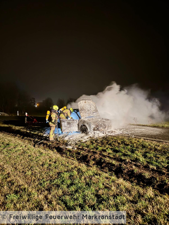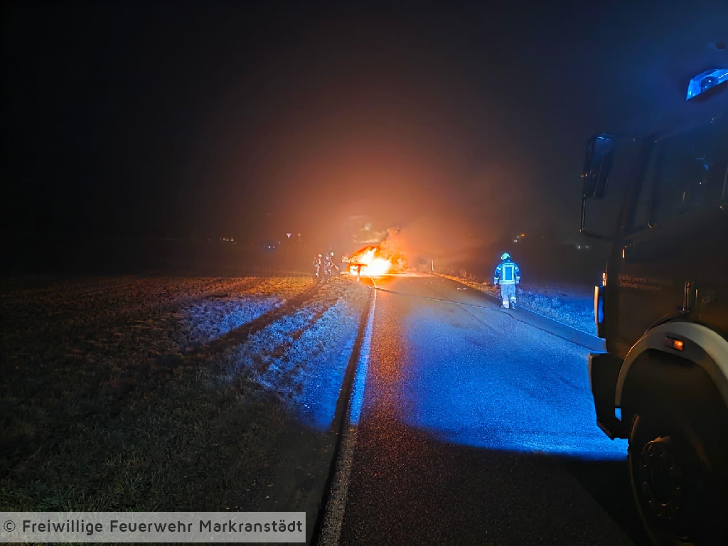 In den frühen Morgenstunden des 28. Dezember 2025 wurde die Feuerwehr zu einem PKW-Brand alarmiert. Der Einsatz ereignete sich gegen 04:17 Uhr. Beim Eintreffen der ersten Einsatzkräfte stand der Pkw bereits in Vollbrand. Ein Trupp unter Atemschutz ging umgehend zur Brandbekämpfung vor und löschte das Fahrzeug mit einem C-Rohr. Gegen 05:00 Uhr war das Feuer unter Kontrolle, sodass Nachlöscharbeiten durchgeführt wurden. Um 05:30 Uhr konnte schließlich „Brand aus“ gemeldet werden. Die Einsatzstelle wurde anschließend an die Polizei übergeben. Nach Abschluss aller Maßnahmen kehrten die eingesetzten Kräfte wieder zum Ausgangspunkt zurück.