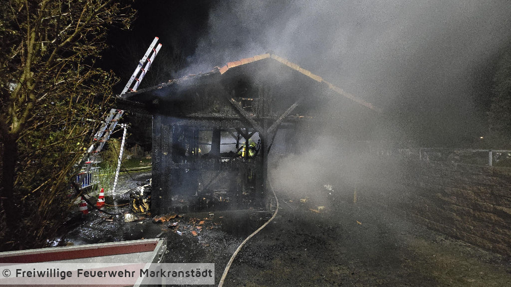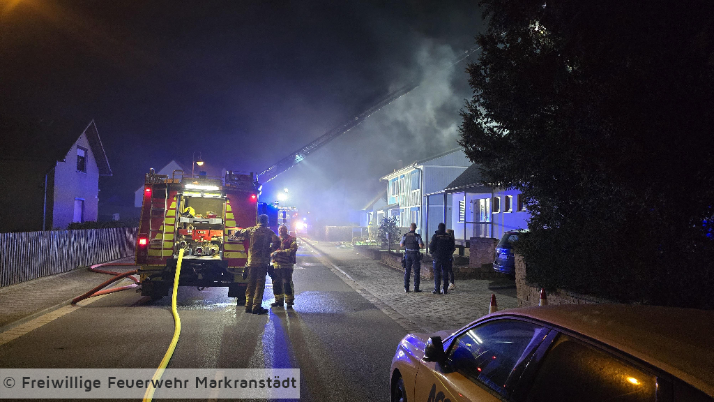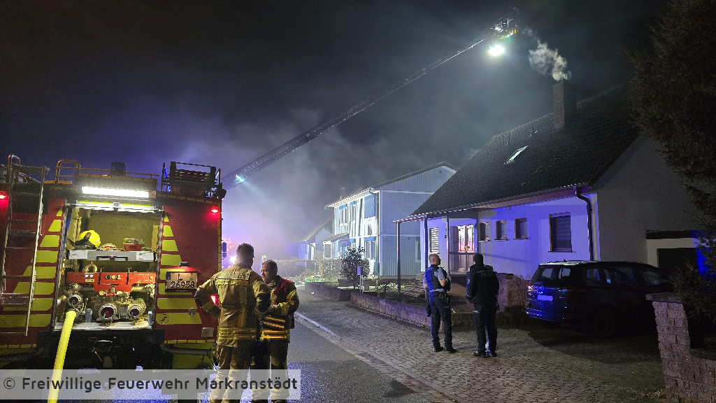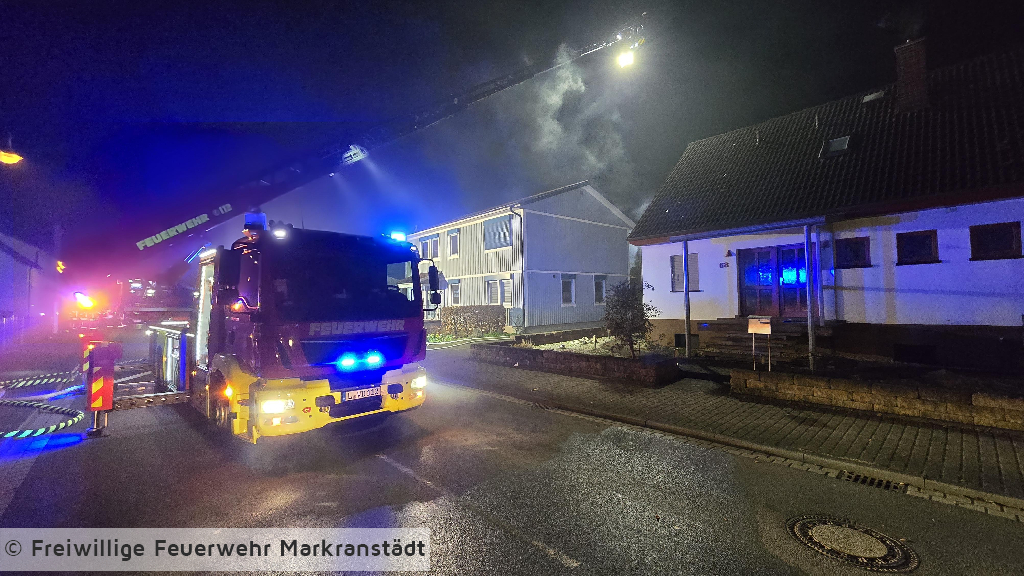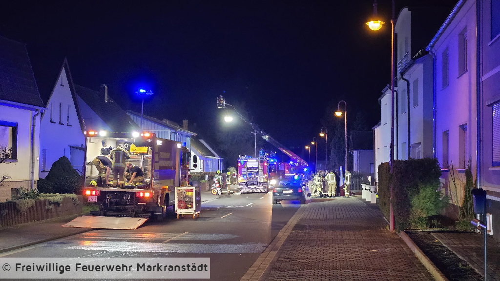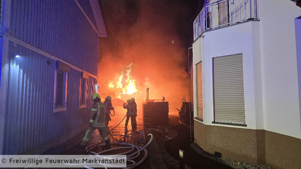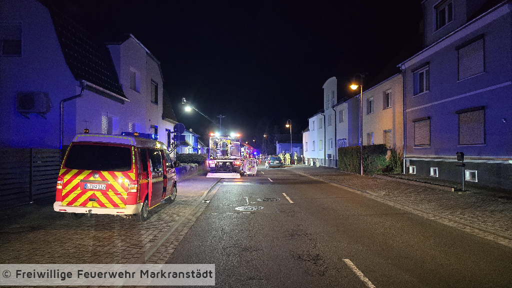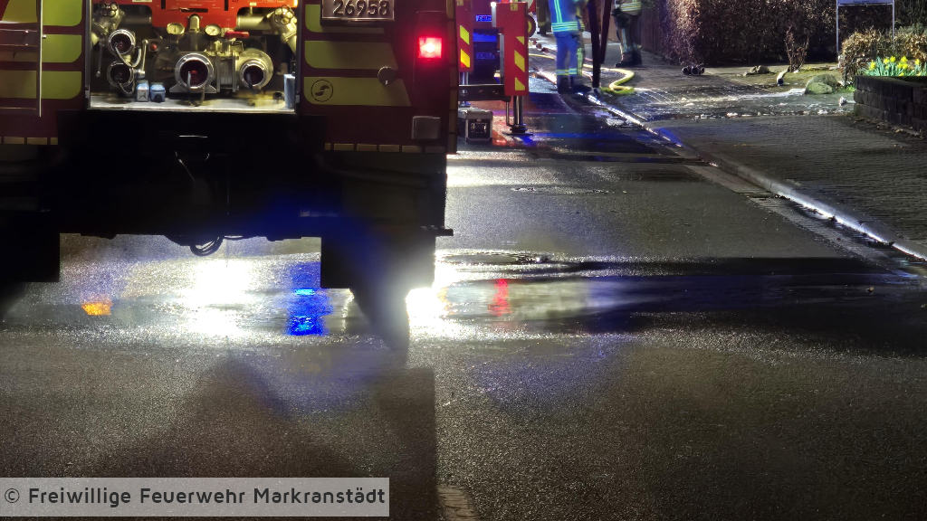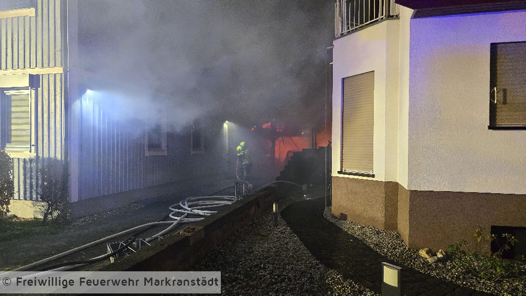 In den frühen Morgenstunden wurde die Feuerwehr zu einem Brand eines Carports an einem Gebäude alarmiert. Beim Eintreffen der ersten Einsatzkräfte stand ein Carport, in dem sich PKWs befanden, bereits in Flammen. Umgehend wurden zwei Trupps unter Atemschutz zur Brandbekämpfung eingesetzt. Durch das schnelle Eingreifen der Feuerwehr konnte das Feuer zügig unter Kontrolle gebracht und das Übergreifen auf das angrenzende Wohngebäude verhindert werden. Im weiteren Einsatzverlauf wurde der Brand mit insgesamt drei Strahlrohren gelöscht. Eine auf dem Carport installierte Photovoltaikanlage wurde gesichert, um zusätzliche Gefahren zu vermeiden. Während des Einsatzes verletzte sich eine Feuerwehrkraft und musste zur weiteren Behandlung in ein Krankenhaus gebracht werden. Gegen 04:45 Uhr konnte „Feuer aus“ gemeldet werden. Anschließend wurden Restlöscharbeiten durchgeführt sowie der Rückbau eingeleitet.