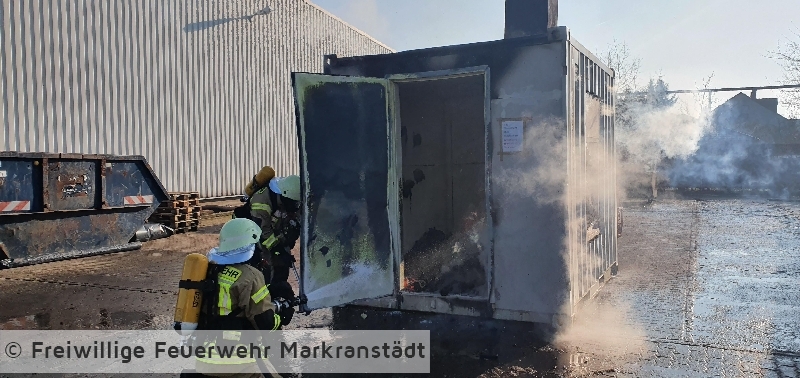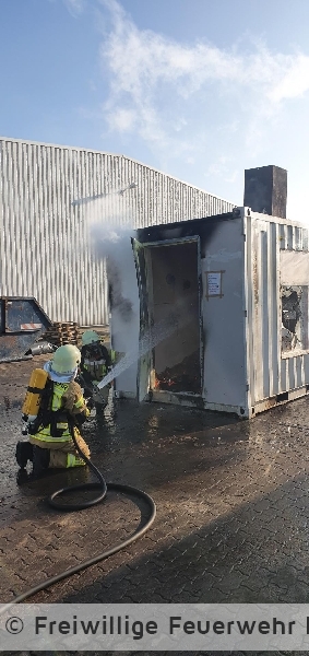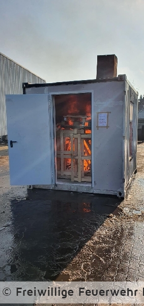 Ein ortsansässiges Unternehmen führte im Rahmen ihrer Mitarbeiterschulung, auf einem Gewerbegelände im Ranstädter Mark, Brandversuche mit diversen Baumaterialen durch. Die Kameradinnen und Kameraden sicherten dies ab.
