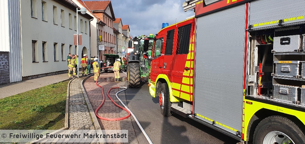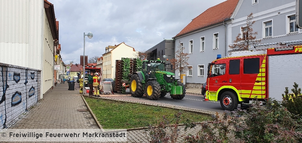 Durch einen gebrochenen Hydraulikzylinder an einem Traktor liefen größere Mengen Hydrauliköl auf die Straße. Dieses wurde durch die Feuerwehr mittels Ölbindemittel gebunden und im Anschluss die Straße gereinigt.