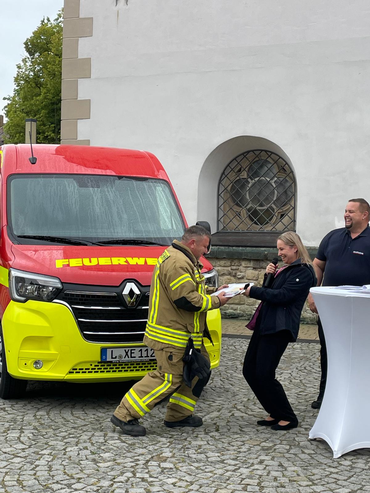 „Wir danken den Kameradinnen und Kameraden für ihren unermüdlichen Einsatz und wünschen ihnen mit den neuen Fahrzeugen allzeit gute Fahrt – und dass sie stets gesund von ihren Einsätzen zurückkehren“, so Bürgermeisterin Nadine Stitterich bei der offiziellen Übergabe.