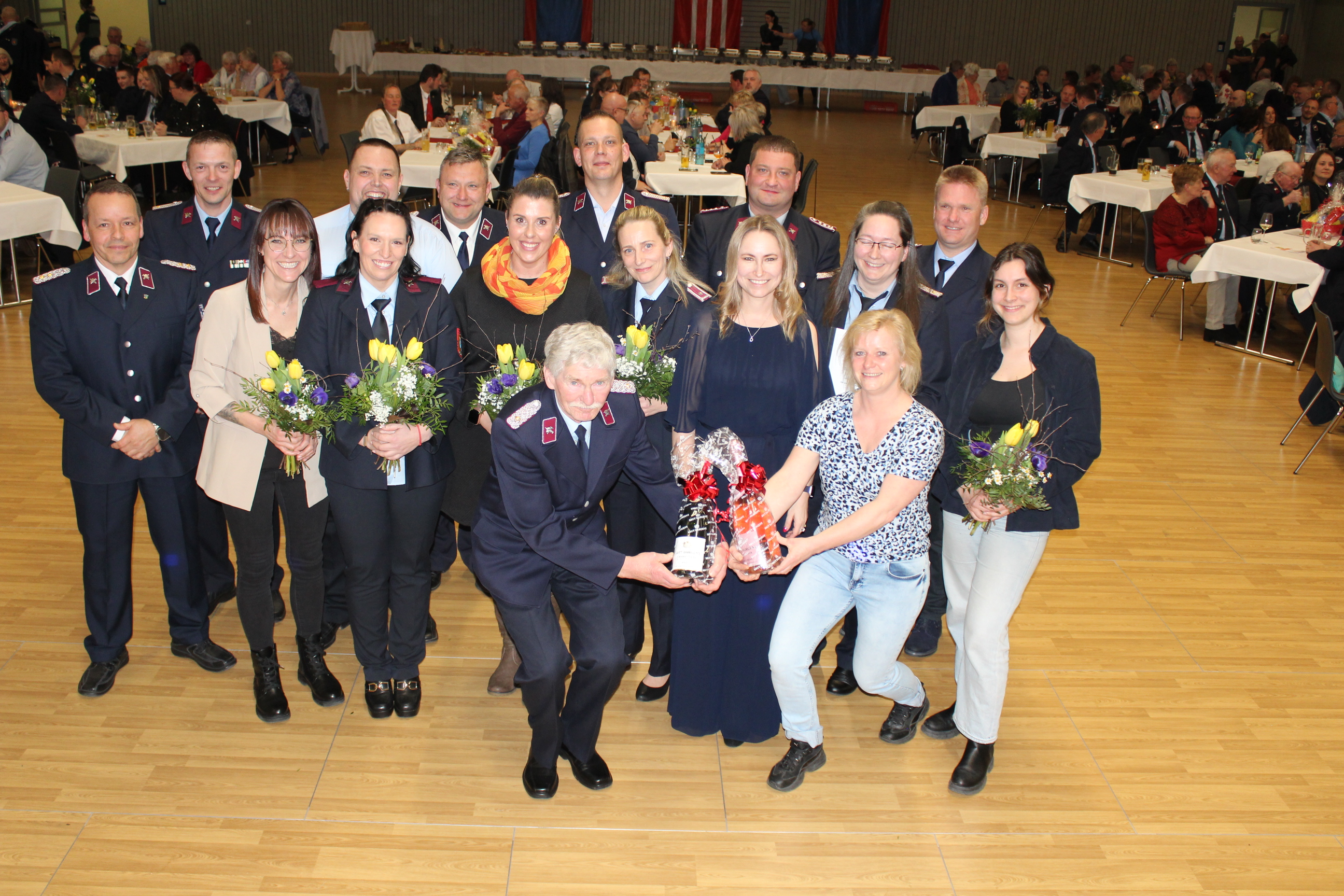 Im Anschluss an die Grußworte von Bürgermeisterin Nadine Stitterich sowie dem stellvertretenden Kreisbrandmeister Alexander Hecking, die die engagierte ehrenamtliche Arbeit der Kameradinnen und Kameraden würdigten, wurden die folgenden Beförderungen und Ehrungen vorgenommen: