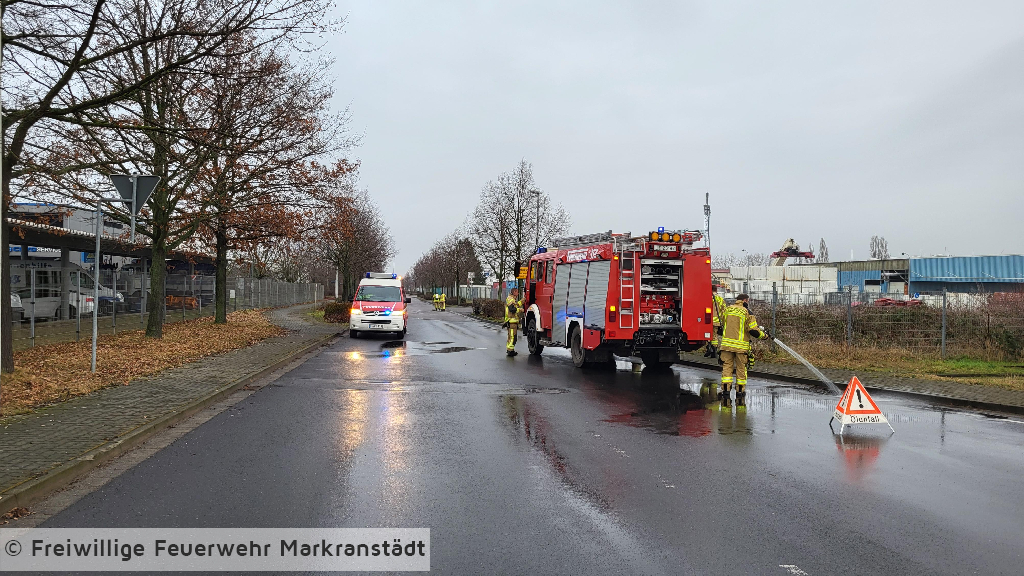 Am Einsatzort angekommen fanden die Einsatzkräfte eine größere Dieselspur vor. Diese zog sich durch das gesamte Gewerbegebiet Frankenheim und führte weiter Richtung Dölzig. Mittels Ölbindemittel wurde die Dieselspur gebunden.