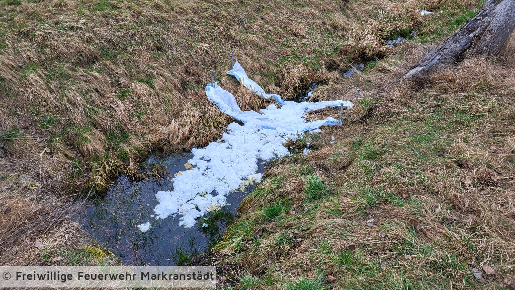 Beim Eintreffen an der Einsatzstelle bestätigte sich die Alarmmeldung. Aus ungeklärter Ursache kam es zu einer größeren Verunreinigung mit Diesel/Heizöl auf dem Fließgewässer im Ortsteil Schkölen. Zum Errichten einer Ölsperre und zum Beproben des Wassers wurde der CBRN-Erkundungszug sowie die Ölsperre-Gewässer des Landkreises Leipzig mit alarmiert. Die Kameradinnen und Kameraden errichteten eine Ölsperre und führten einige Messungen auf dem Gewässer durch.