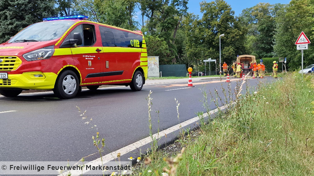 Am Einsatzort eingetroffen bestätigte sich die Alarmmeldung. Die Kameradinnen und Kameraden fanden eine ca. 200m lange Ölspur in der Ortslage Göhrenz vor. Diese konnte mittels Ölbindemittel abgestumpft werden.