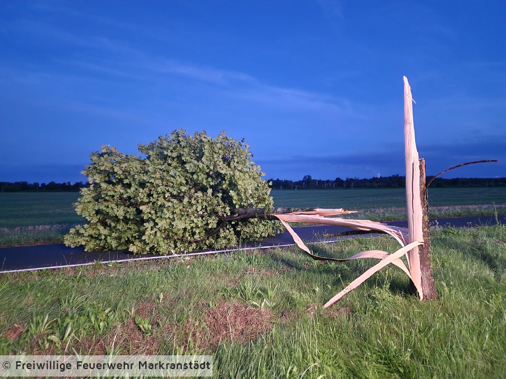 Beim Eintreffen an der Einsatzstelle bestätigte sich die Alarmmeldung, ein Baum lag auf der Straße. Mittels Kettensäge konnte der Baum zerkleinert und im Anschluss beräumt werden.