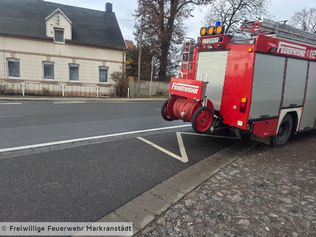 Am frühen Nachmittag des 7. Dezember 2025 wurde die Feuerwehr zu einer ausgedehnten Ölspur im Bereich zwischen Priesteblich und Dölzig alarmiert. Erste Meldungen bestätigten eine längere Verunreinigung der Fahrbahn, die sich von Priesteblich in Richtung Dölzig erstreckte. Nach Eintreffen an der Einsatzstelle stellten die Einsatzkräfte fest, dass der Ursprung der Ölspur im Gewerbegebiet an der Siemensstraße lag. Zur Reinigung des betroffenen Straßenbereiche wurde eine Spezialfirma angefordert. Für die Feuerwehr bestand daher kein weiterer Handlungsbedarf. Der Einsatz konnte anschließend beendet und die Einsatzbereitschaft wiederhergestellt werden.