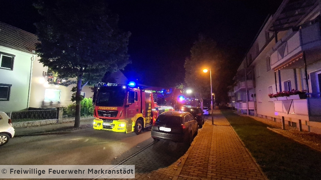 Die Einsatzkräfte unterstützten den Rettungsdienst beim Transport der verletzten Person aus der Wohnung zum Rettungswagen.