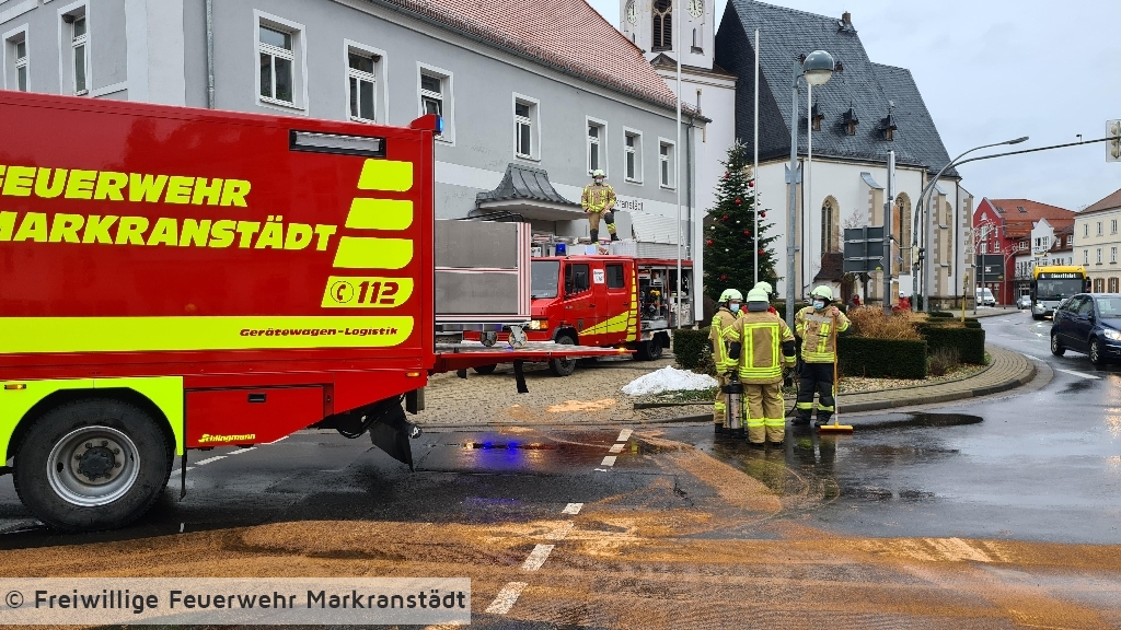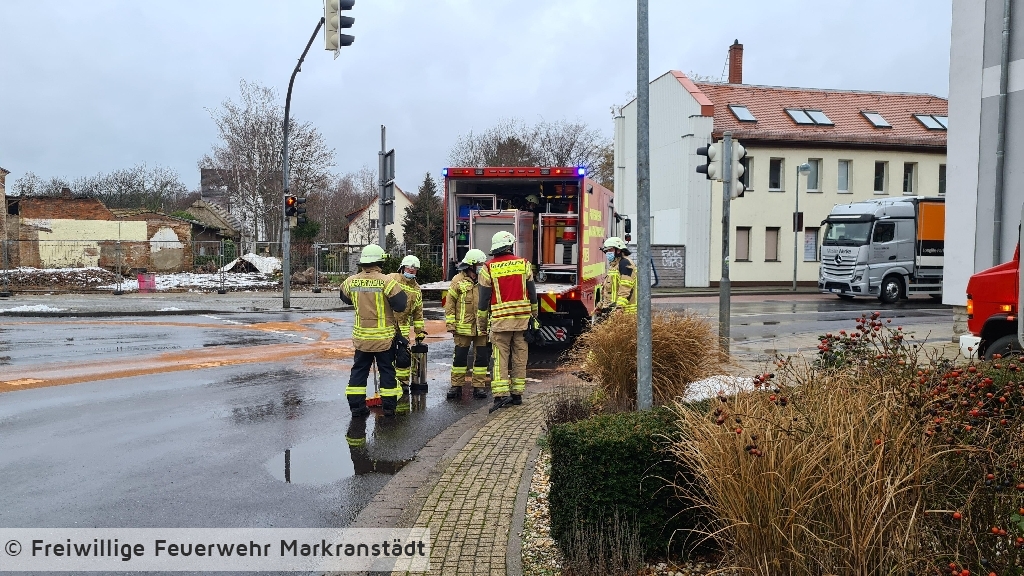 Die eintreffenden Einsatzkräfte fanden eine Ölspur vor, die sich durch das gesamte Stadtgebiet zog. Die Kameradinnen und Kameraden sicherten die Einsatzstelle und stumpften die Kreuzungsbereiche ab. Nach dem Eintreffen einer Spezialfirma zur Beseitigung von Ölspuren, konnte die Einsatzstelle an diese und die Polizei übergeben werden.