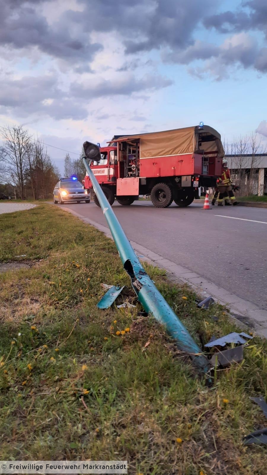 Die eintreffenden Kameradinnen und Kameraden fanden an der Einsatzstelle eine umgefahrene Straßenlaterne vor. Die Einsatzkräfte sicherten die Unfallstelle. Nach dem Eintreffen des Stromversorgers, konnte die Laterne stromlos geschalten und von der Straße geräumt werden. Nach getaner Arbeit fuhren alle Kräfte ihren Ausgangspunkt wieder an.