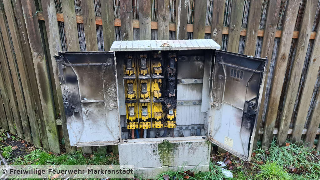 Beim Eintreffen an der Einsatzstelle fanden die Einsatzkräfte kein brennendes Kleinelektrogerät, sondern einen Stromverteilerkasten auf der Straße vor. Durch Zuhilfenahme eines Kleinlöschgerätes konnte der Brand zügig gelöscht werden. Nach erfolgreicher Brandbekämpfung wurde die Einsatzstelle an den Netztbetreiber übergeben.